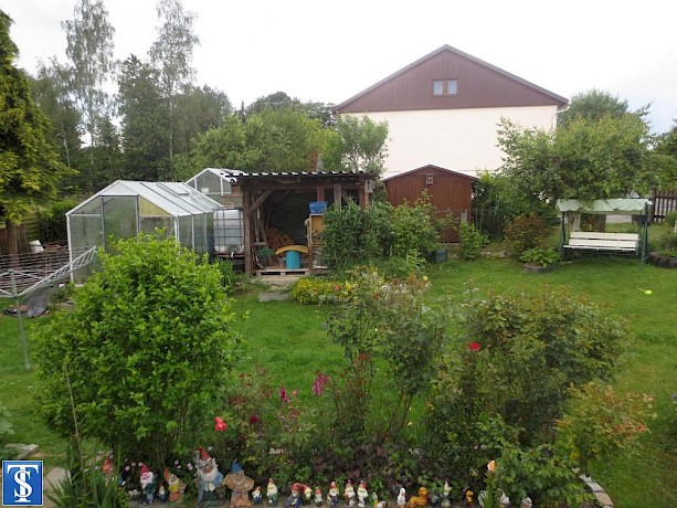 Das 2-geschossige Einfamilienhaus mit teilausgebautem Dachgeschoss wurde 1881 massiv erbaut (zugehöriges Gebäude zum damaligen Gasthof) und 1956 zu 2 Wohnungen ausgebaut. - - - Das Erdgeschoss wird für eine Garage, Lagerräume, Heizung, Tanks Kläranlage usw. genutzt. Im 1.OG und DG befindet sich eine Wohnung mit 6 Zimmern (Wohnzimmer mit Zugang zur Terrasse, Küche, Esszimmer, Schlafzimmer, Bad, WC, 3 Kinderzimmer). Der Spitzboden könnte ebenfalls für zusätzliche Wohnfläche ausgebaut werden. - - - Seit dem Jahr 1993 erfolgten diverse Sanierungen und Modernisierungen (Öl-Zentralheizung), Fenster und Elektrik (1995), voll biologische Kleinkläranlage (2015), neuer Brenner für Ölkessel (2024), Dacheindeckung (2018) usw. Ausstattung